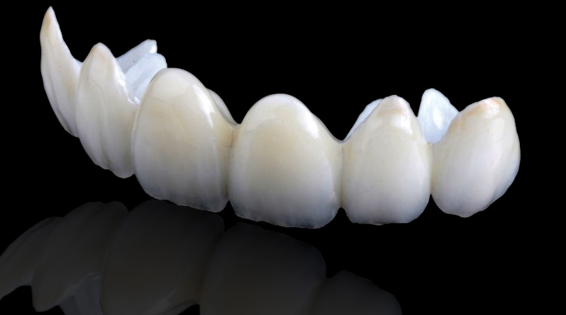 La estética de la cerámica terminada sobre el zirconio en el laboratorio alcanza la perfección ya que sin el metal de las protesis convencionales, la luz no encuentra barreras y es reflejada de una manera totalmente natural.